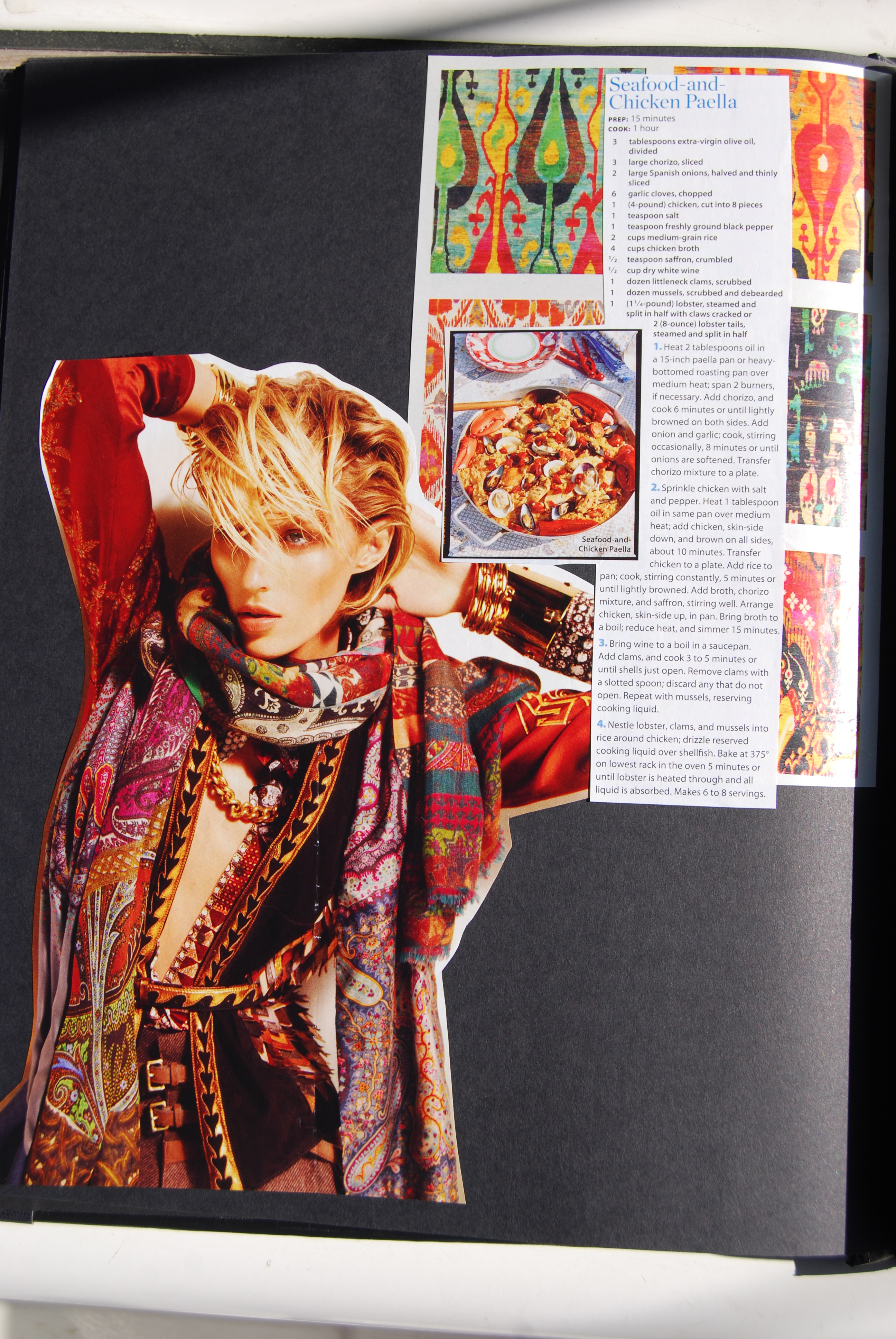 I tear out any articles, recipes, pictures, etc. that I like and I tape them in to notebooks with black pages. That way I’m able to save that inspiring article, beautiful photo or delicious looking recipe without filling up our spare space with piles of magazines.