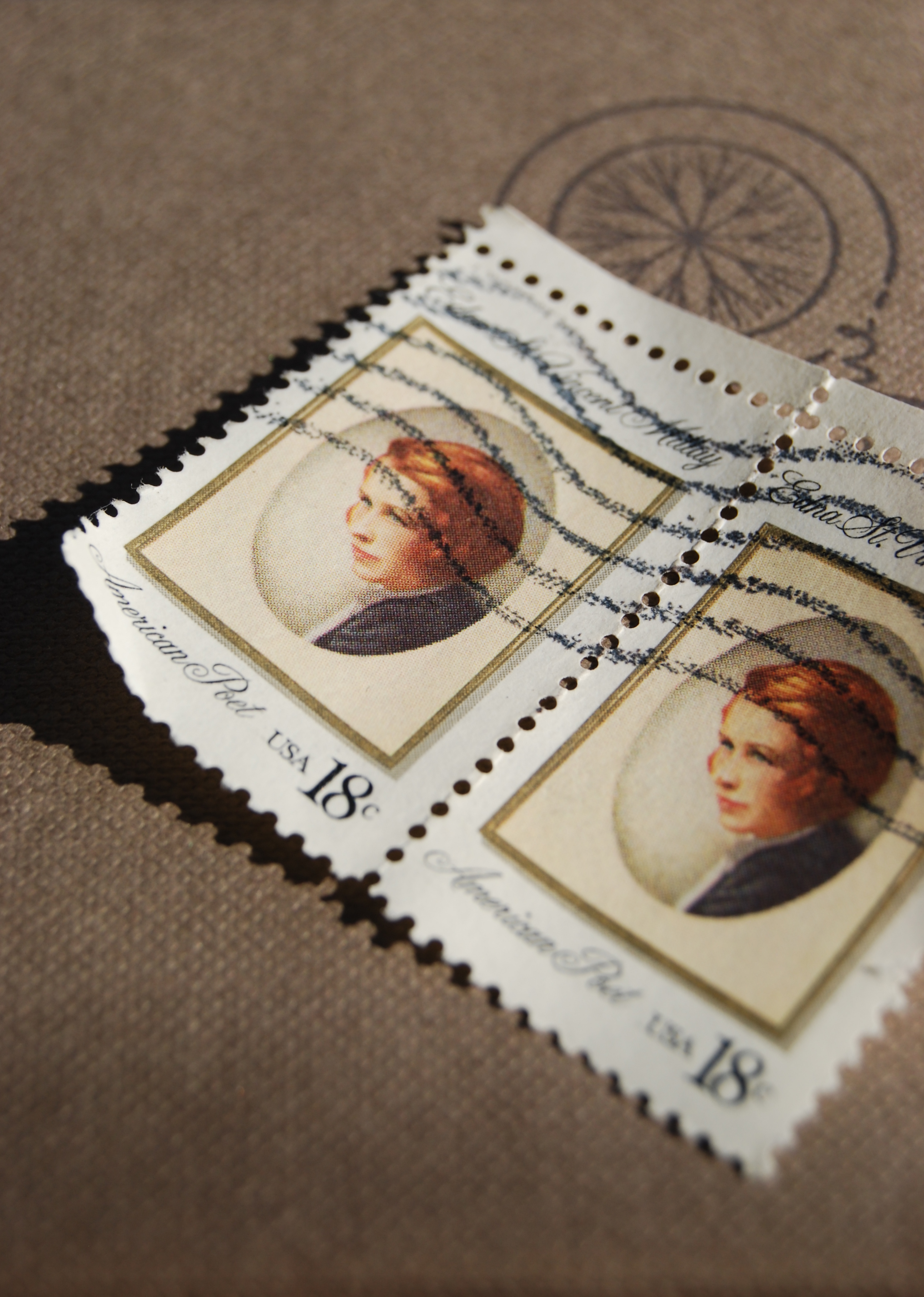 The other day at work we received a letter in the mail that had these really cool stamps of Edna St. Vincent Millay, the famous American poet. A couple days later when I went to see my grandmother I told her about the stamps and she prompted me to read some of Millay’s poetry out loud to her.