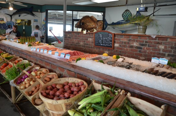This afternoon, Matt and I went on a dinghy ride to pick up some seafood from the local seafood shop in Wrightsville Beach. We stopped in at Motts Channel Seafood, which had a great selection of seafood and local produce. Matt and I are very adament about trying to eat fresh seafood and not something that has been previously frozen. I guess living on the water, you become particular about things like these! We got a pound of shrimp to have for dinner in the upcoming days and headed on to Dockside Restaurant for some appetizers.