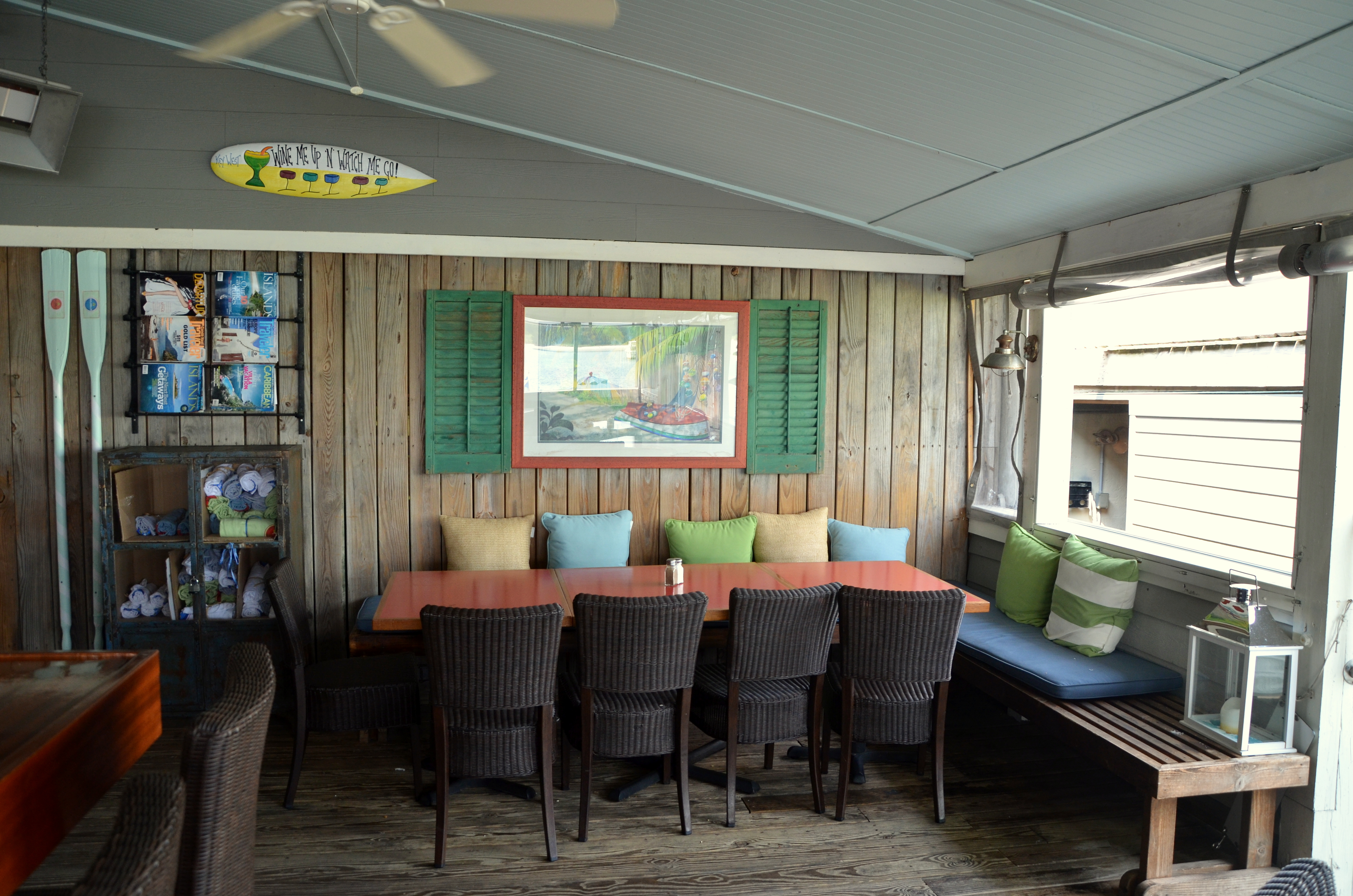 After the excitement of the morning, Matt and I decided that we needed something to eat since we had missed lunch. We stopped in at the Rhumbar at Stillwater Restaurant, where Antonio works, to pick up some appetizers. Stillwater offers half price appetizers every day from 3-5 p.m. and let me tell you, their appetizers are incredible! The restaurant is a little bit more upscale but the Rhumbar has a very relaxed atmosphere. Matt and I sat under the shade of the umbrellas on the deck and ate calamari, oysters rockefeller and fried okra. A much needed break from the craziness of the day.