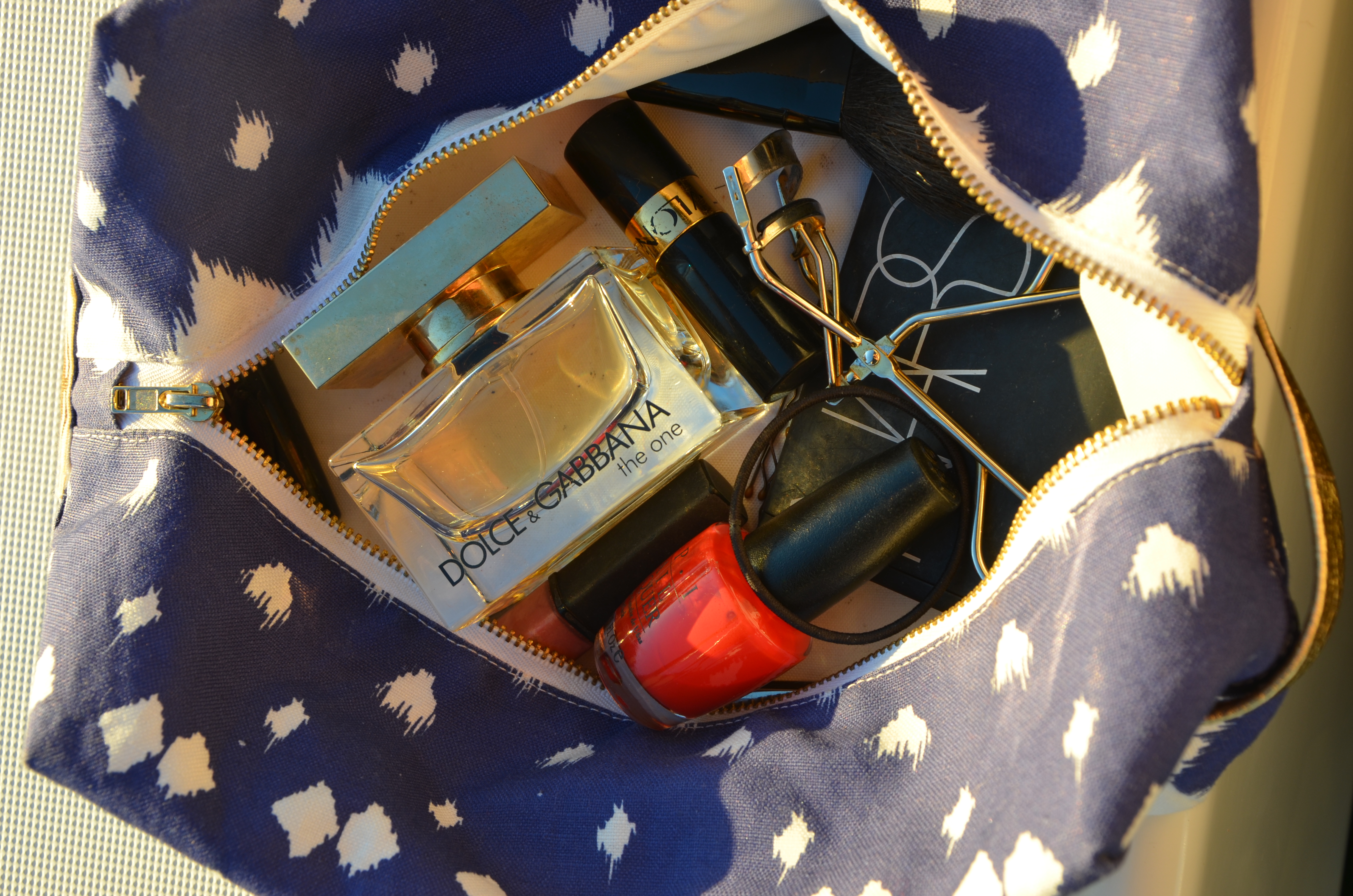 - My Hammocks and High Tea makeup bag has bee a travel necessity. I keep everything from makeup and perfume to my toothbrush in here. It’s the perfect size to fit everything I need and with no structural support, I can toss it into any bag and know that it will fit. With its cute pattern and gold zipper, it might just be one of my favorite items that I travel with!